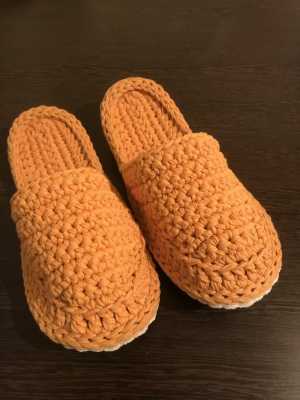 Домашние тапочки ручной работы Тапочки связаны из трикотажной пряжи. Стелька придает массажный эффект.