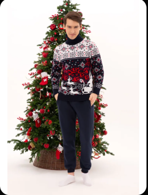 Свитер шерстяной новогодний, 46-48 размера. Состав 70% шерсть, 30% акрил. Новый. Подойдет как мужчинам, так и женщинам.