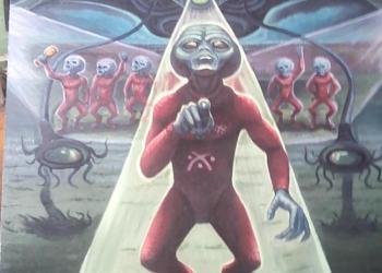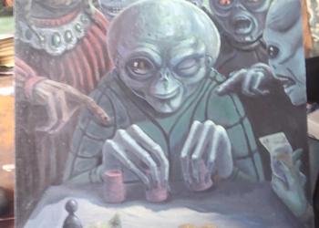 Продаю полную выставку Инопланетные пришельцы 21 картина, сделано ДВП размер ширина 60 см высота 90 см .