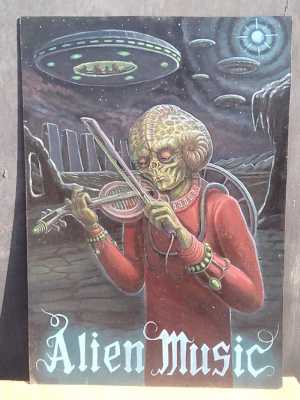 Картина плакат "Рок музыка пришельцев". Выполнено на ДВП размер высота 90 см ширина 60 см. Для всех кто любит музыку.