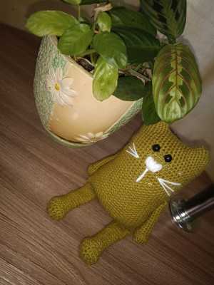 Котик Саймон очень любит сидеть и размышлять о чем либо.Рост 15 см(в сидячем положении),18-19см в стоячем положении.