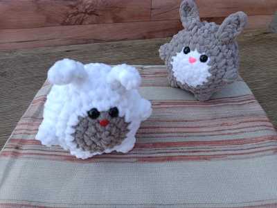 Зайчики связанные из плюшевой пряжи,очень любят проводить время вместе💝Рост зайчиков 15см.